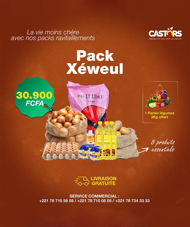 1 sac de riz parfumé Pithimi 25kg, 1 demi-sac d’oignons, 5 kg de pomme de terre, 3 bouteilles d’huile de tournesol de 1L , 500g de spaghetti kayna , 2 sachets de Moukhamsa kayna 250g, 1 tablette d’œuf , ———c’est pas tout ++++ 3 kg de légumes offerts
